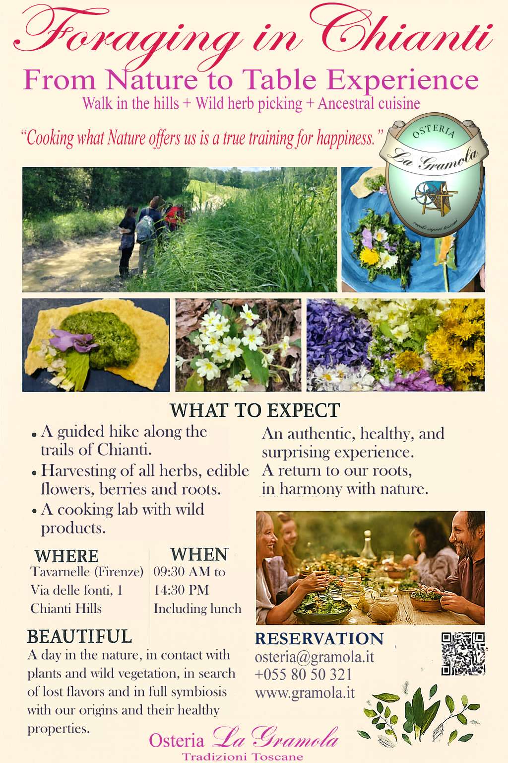 In the Chianti hills, at Osteria La Gramola, near Tavarnelle Val di Pesa (FI). Dates available on request. Spring and fall are ideal, but nature offers something all year round.